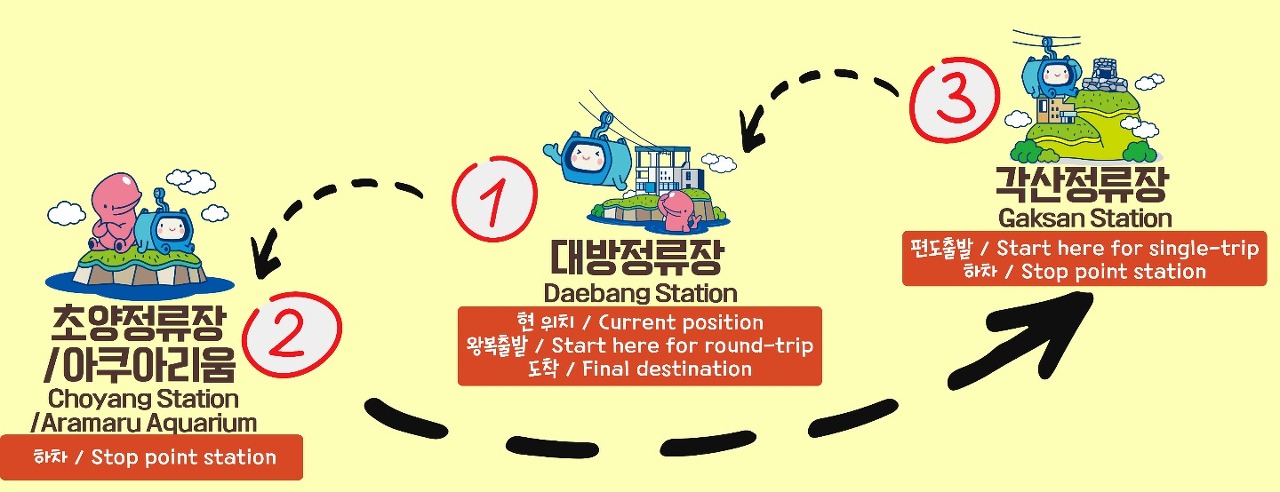 - 편도 탑승권은 각산정류장에서만 이용가능하며, 승차장에 도착하여 대기한 순으로 탑승하고 대방정류장에서 하차합니다.
