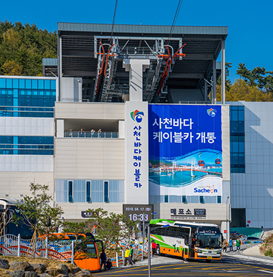 사천바다케이블카는 국내 최초 3개 정류장을 운영하며, 2.43km의 선로를 약 20분간 탑승하여 사천의 아름다운 바다와 산을 공중에서 감상할 수 있습니다. 케이블카 이용 시 쾌적한 환경조성을 위해 10인승 중형 캐빈을 사용하여 이용에 불편함이 없도록 하였으며, 최대속도 6m/s로 시간당 최대 1,300명이 이용할 수 있습니다.